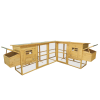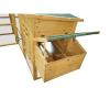 Krásně řešený rohový a prostorný kurník s dvěma vchody a s opravdu velkým výběhem, který zajistí jak dostatek prostoru pro hrabání slepic, tak i velký přísun čerstvého vzduchu. Doporučujeme pro kvočny s malými kuřátky. Dřevo je zakončeno změkčenými rohy, aby nedocházelo k úrazu. Lze použít jako prostornou králíkarnu pro vaše chlupaté mazlíčky. Kurník nedistonuje snáškovými hnízdy, je tak ideálním řešením i jako králíkárna.