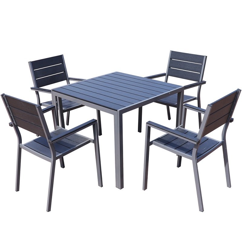 Zahradní nábytek v sestavě jednoho stolečku a čtyř pohodlných židlí zútulní každou terasu nebo pergolu. Židle jsou stohovatelné a mimo sezonu zaberou minimum prostoru. Konstrukce nábytku je z lehkého hliníku, deska stolu a sedací částí křesel z odolného kompozitního materiálu, který se postará o jeho dlouhou životnost při minimální údržbě. Materiál je velmi odolný povětrnostním vlivům a UV záření a bude zdobit Vaši zahradu po dlouhá léta.