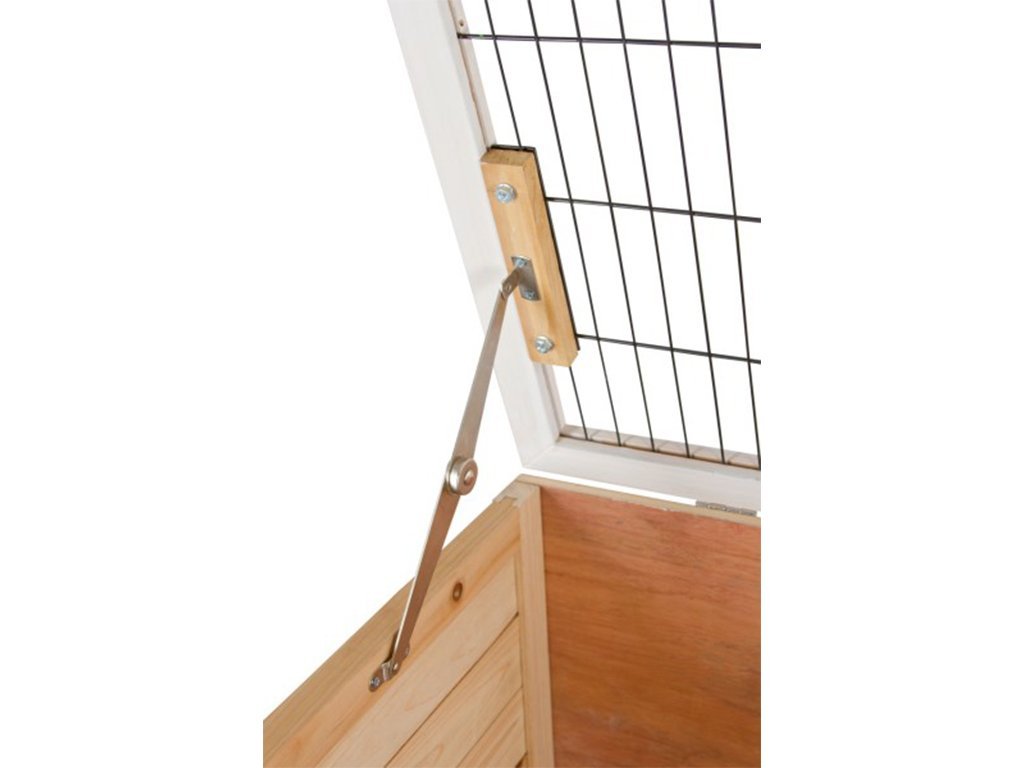 Čištění klece pro hlodavce zvládnete během pár minut. Práci velmi usnadní vyjímatelné plastové trusníky o výšce 6 cm, které stačí z klece vysout, vyčistit a vrátit zpět. Při údržbě klece jistě oceníte také výklopnou střechu s fixací.
