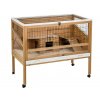 Stylová klec pro králíky, morčata a jiné hlodavce o rozměrech 113x60x92 cm pro interiérové použití. Jedná se o perfektní dřevěnou klec, která je vybavena dřevěným domkem s odpočívadlem a vyjímatelným trusníkem pro snadné čistění. Klec je umístěna na čtyřech nohách s brzdou pro snadnější manipulaci.