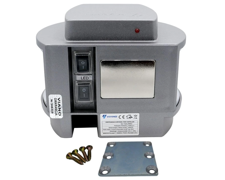 Zařízení generuje ultrazvukové signály, které jsou pro kuny a hlodavce nepříjemné, a v důsledku toho po krátkém čase chráněná místa opouští. Přístroj vydává zvuky s proměnnou frekvencí díky zabudovanému modulu. Tato automatická změna kmitočtu zajišťuje, aby si škůdce na zvuk nezvykl a nevrátil se. Odpuzovače VIANO obsahují piezoelektrické reproduktory, které jsou známé svým vysokým výkonem, a i díky odrazu ultrazvuku od pevných ploch mají tak velký dosah zvuku ve vnitřních i venkovních prostorech. Navíc tento odpuzovač disponuje také LED světly, které stroboskopicky blikají ve frekvenci 5 záblesků za sekundu při zaznamenání pohybu.