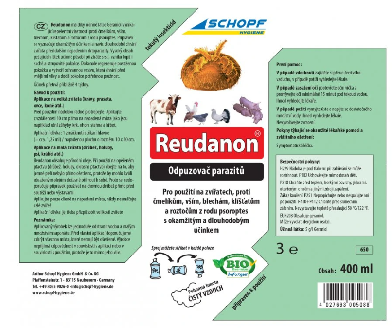 BIO roztok ve spreji proti čmelíkům, blechám, klíšťatům SCHOPF REUDANON AEROSOL
