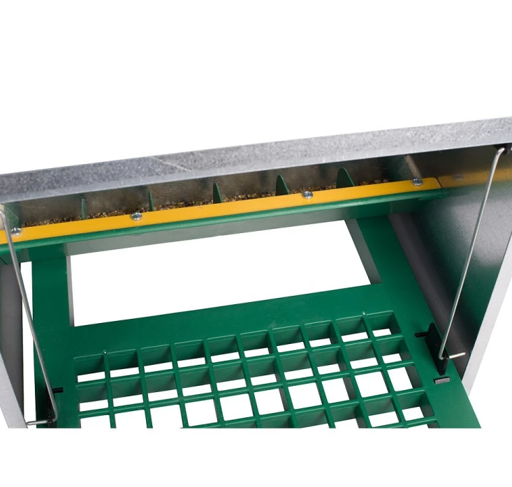 Plastové krmítko pro drůbež z robustního materiálu. Krmítko má kulaté otvory akorát tak pro jednu hlavičku. Drůbež se tak v krmítku netlačí a nemůže si ublížit. Snadno se obsluhuje a doplňuje krmívem.