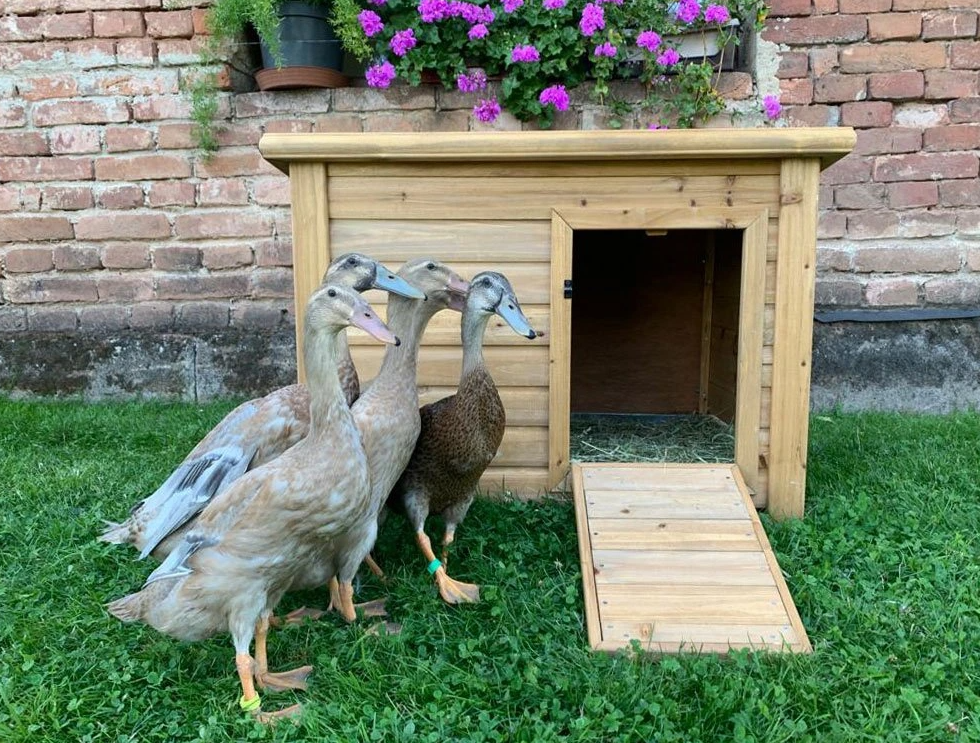 Domek pro kachny a husy, otevírací střecha pro snadné čištění, HPL laminát, neabsorbuje pachy ani tekutiny, rozměry: 60x46x44 cm. Jedná se o velice komfortní kachník, který je ideální pro všechny zahrady, parky i přírodní rezervace. Kachny a husy budou v tomto domku v naprostém bezpečí před všemi povětrnostními vlivy. Kachník a husník navíc nabídne díky velice dobré přirozené izolaci materiálu příjemné prostředí v horkém i chladném počasí. Čištění kachníku zvládnete během pár minut díky praktické otevíratelné střeše. Domek pro kachny vyrobený z velice kvalitního a odolného materiálu vám bude sloužit mnoho let.