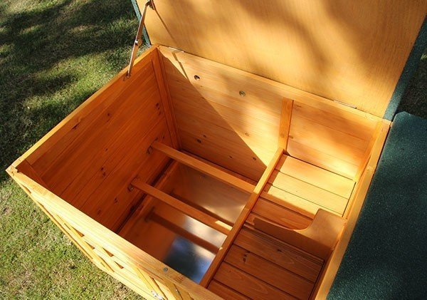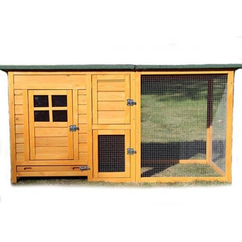 Kurník je kompletně vyroben z masivního borového dřeva a je opatřen nátěrem odolným proti povětrnostním vlivům. Část výběhu je vybavena pozinkovaným drátem a poskytuje drůbeži dostatek světla a čerstvého vzduchu. Střecha je vyrobena z odolného dehtového papíru. Na zadní straně stabilního prvku jsou dva větrací otvory pro zajištění optimálního přívodu vzduchu.