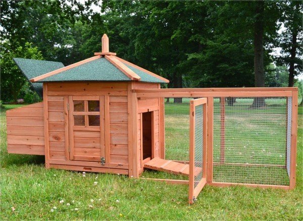 Celá konstrukce je vyrobena z kvalitního dřeva a je vybavena kovem, za účelem stability kurníku. Zásuvku lze snadno vytáhnout zvenku tak, aby byl slepičí hnůj rychle a pohodlně zlikvidován. Stálou plochu můžete otevřít v předních dveřích a tak pohodlně přejít dovnitř, abyste také vyčistili hnízda nebo zahnali liné slípky ven. Dveře mají malé okno ve venkovském stylu.