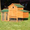 Stabilní konstrukce je velmi rychlá na montáž a snadno se čistí díky trusníku. Slepice a kohouti mohou přebíhat mezi vnitřním a vnějším pláštěm přes kuřecí rampu. Stejnou oblast můžete také zavřít posuvnými dveřmi skluzavkou zvenčí. Takže vaše kuřice zůstávají odděleně přes noc ve stodole nebo ve vnější části, zatímco chtece například vyčistit trusník nebo hnízda.
