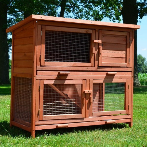 Tento model králíkárny je určen pro chovný pár, případně pro samici s mladými králíčky. Jedná se o dvoupodlažní kotec s možností uzavření jednotlivých pater záklopnými dvířky. Díky dřevěné rampě mohou ušáci přecházet mezi výběhovou a odpočinkovou částí. Obě podlaží disponují zásuvkou na hnůj, díky níž čištění zvládnou i dětští chovatelé.